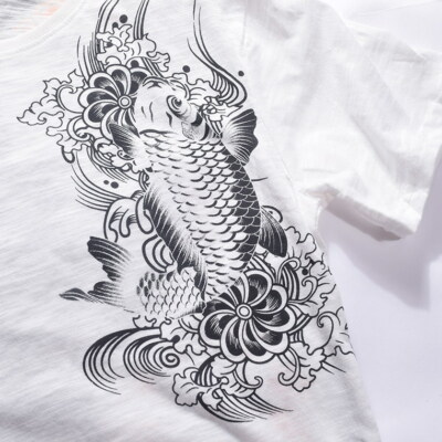 Mens T Shirt Japanese Pattern Embroidery Ukiyo E Carp Koi Fish Dragon Tattoo New Ebay